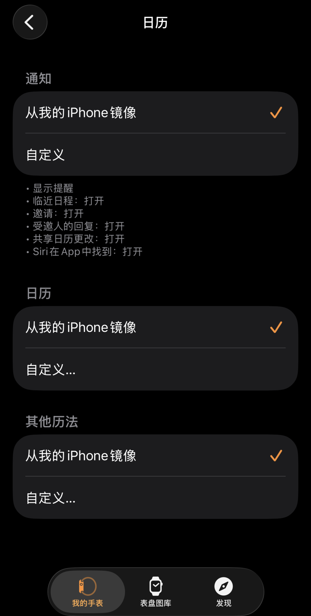 打开手机上的Watch App → 选择可添加小组件的表盘 → 下滑到“复杂功能”模块,在顶部/底部添加日历,选择“你的日程”。