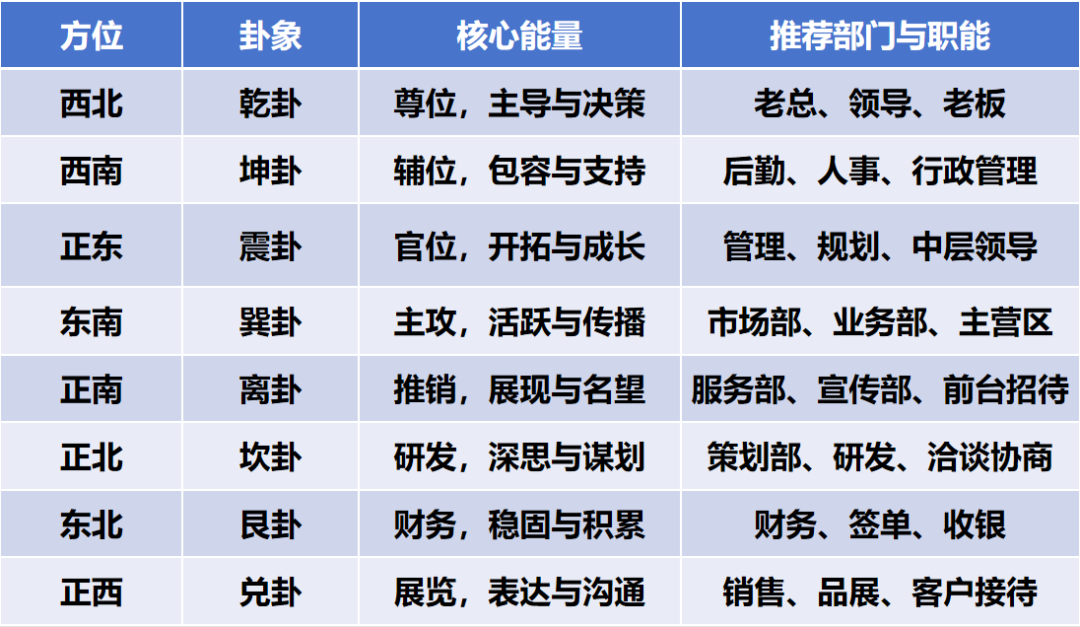 总之,传统智慧中,方位卦象各有其能量属性,如同职场中不同的职位各有其核心职能。让适合的人坐在适合的方位,本身就是一种强大的职场助力。
