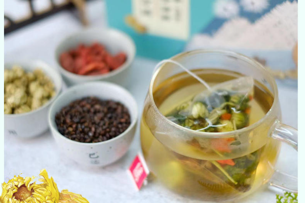 决明子清新菊花茶,含有决明子,桑叶,金银花,菊花,枸杞子,葛根,蒲公英根,菊苣根等可以帮助眼睛消炎。