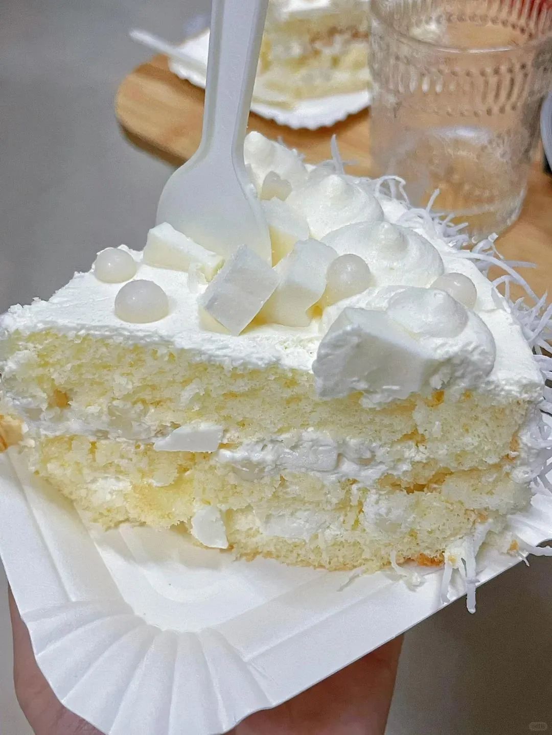 奶白奶油堆着 Q 弹椰冻,撒满椰蓉像踩在沙滩~ 戴顶草帽举着拍,生日照直接定位 “海南”🌴 椰奶清香混着冰凉感,拍完照挖一勺,像把大海的甜吃进嘴!