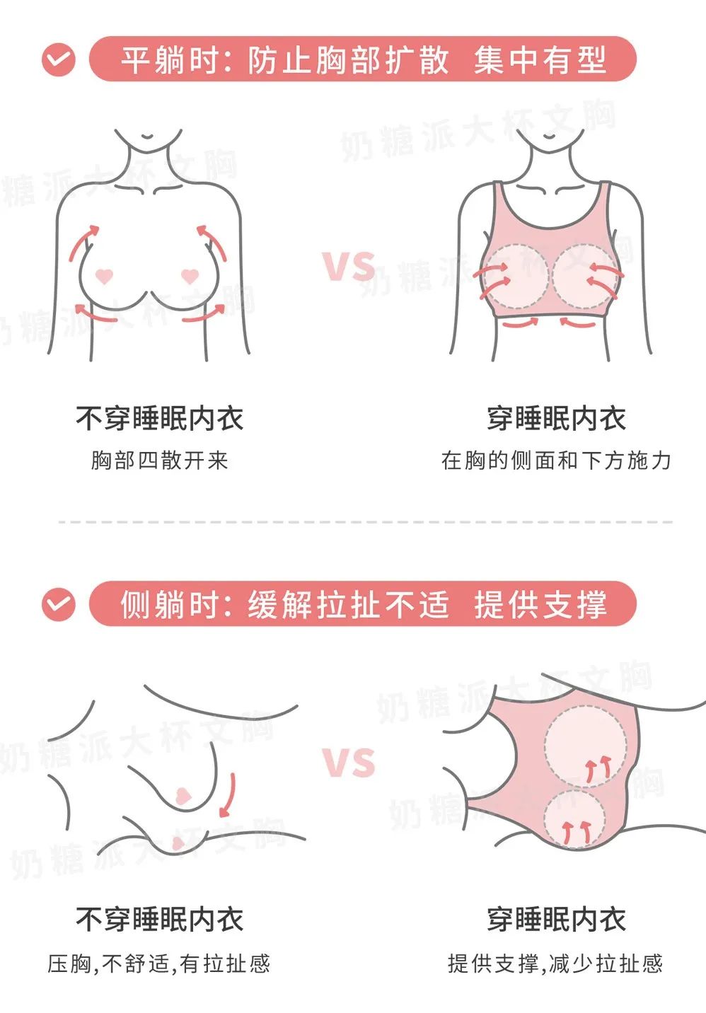 🔺躺下时,对于固定胸部具备承托力,使得胸部的脂肪不会往四周散开