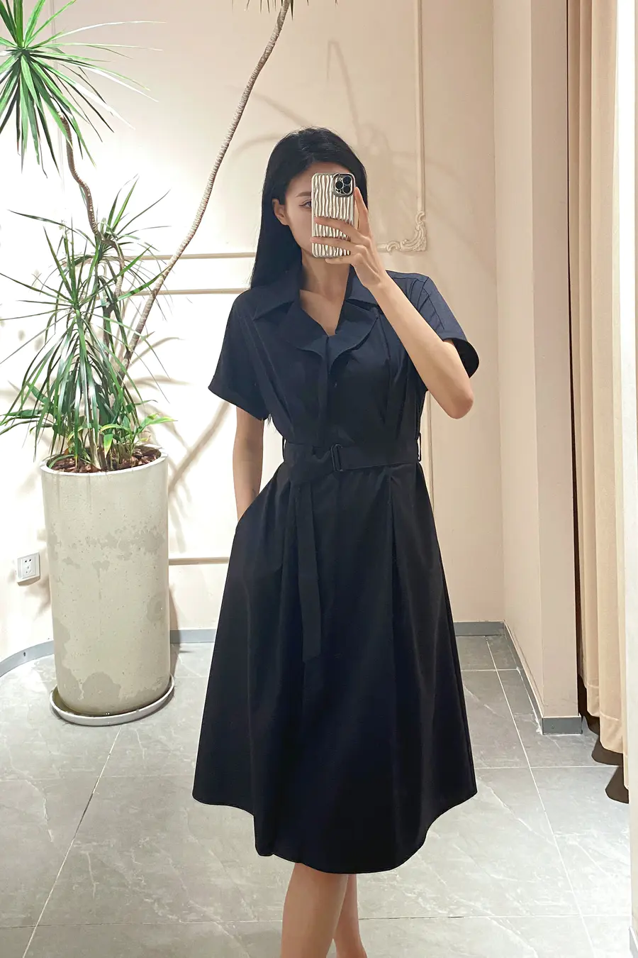 知性优雅超气质,美好的词语已经形容不过来了💙衬衫连衣裙# 轻职场穿搭#