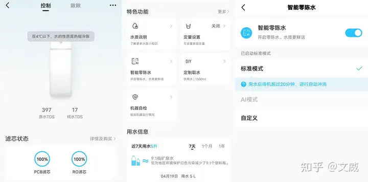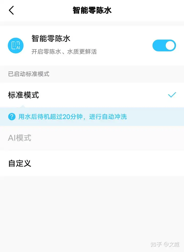 4、针对陈水问题升级了滤芯冲洗,有AI零陈水功能,用户也可以自定义零陈水模式。