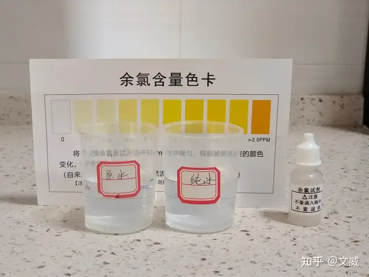 这里原水和纯水颜色都没有余氯超标问题,看来我们当地自来水除了硬度高以外还可以。