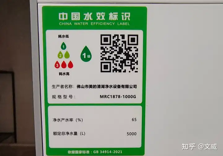 国标《净水机水效限定值及水效等级GB34914-2021》规定一级水效有两个要求: