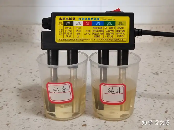 纯水电解后是淡黄色,意味着残留有微量元素。