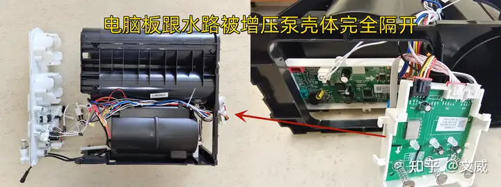 电脑板跟水路被中间的完全隔绝开,水电分离设计的安全系数比较高,水路出现问题也不会影响到电脑板。