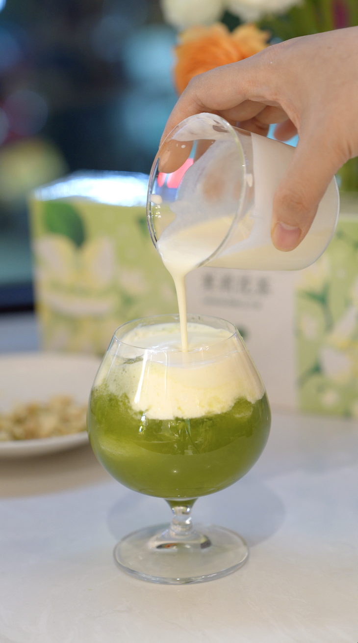 这是一款味道清爽绵密、让人一口沦陷的美味饮品: 茉莉羊角蜜冰沙
