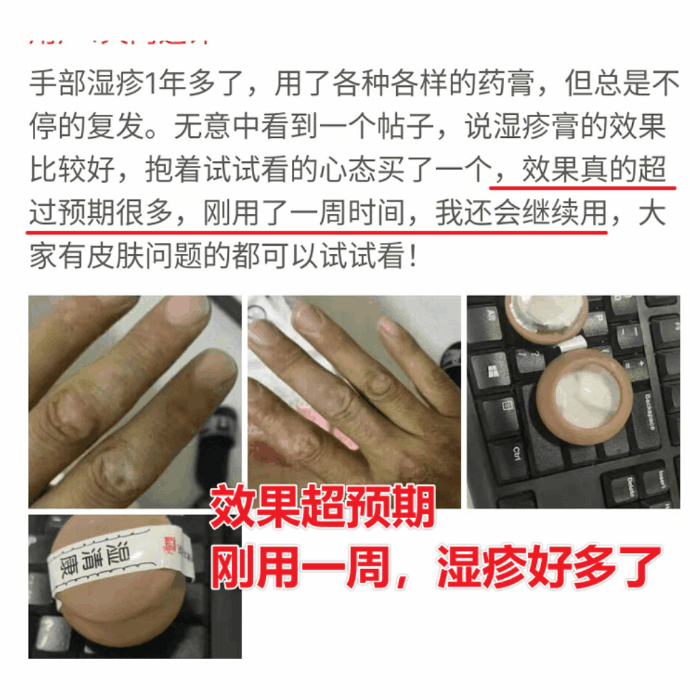 同事小吴手背上总是起红疹 上班的时候也一直在挠 后来我给他推荐了这款湿疹膏 他抹了一段时间后 效果真立竿见影,红疹基本都消除了