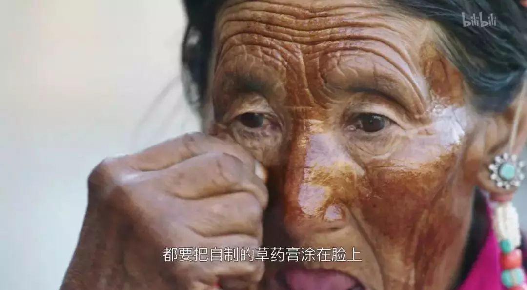 一天,她们相约坐车去 100 公里外采草药,自制护肤品。曲美卓嘎涂这个药膏 70 年了,说它夏天防晒,冬天防风。