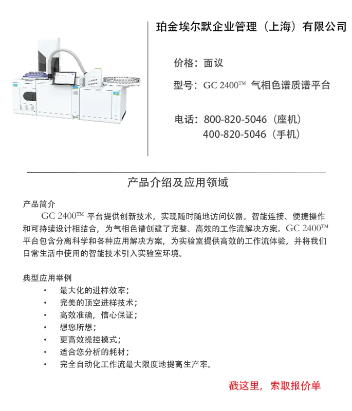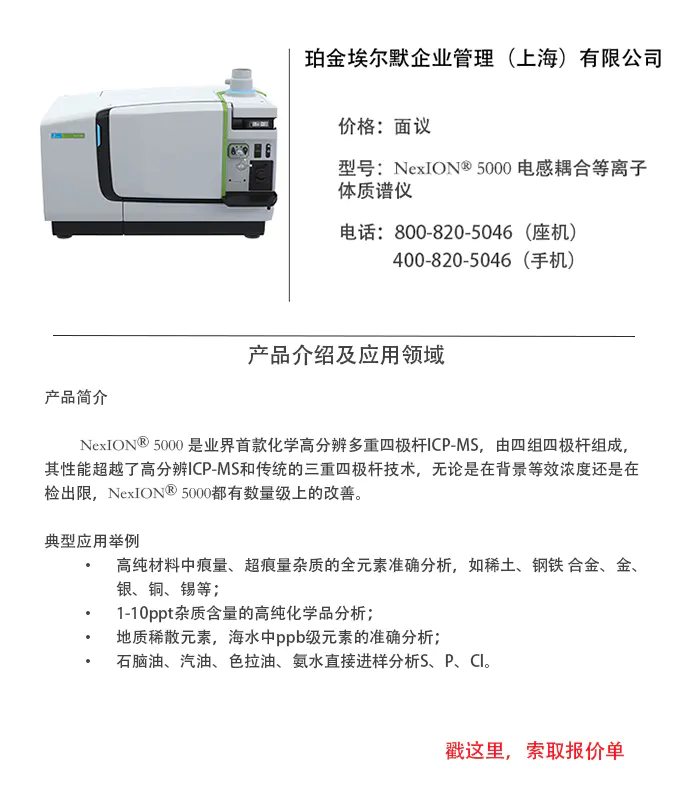 珀金埃尔默公司成立于1937年,是全球领先的科学仪器和解决方案供应商。我们提供广泛的科学仪器和技术,包括光谱仪、质谱仪、实验室自动化设备、液相色谱仪、气相色谱仪等,广泛应用于材料科学、环境科学、能源等领域,为全球科研、制药、医疗、环保等行业提供关键支持。我们的使命是塑造一个更可持续的星球,鼓舞一个更包容的世界,愿景是通过世界一流的服务、热情和目的,加速科学成果。