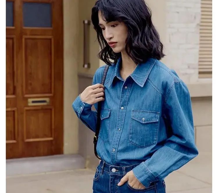 这款HeyDress复古法式牛仔衬衫材质严选了棉和聚酯纤维的混纺面料,耐磨又抗皱,还自带微光泽和牛仔肌理感,特别显品质。