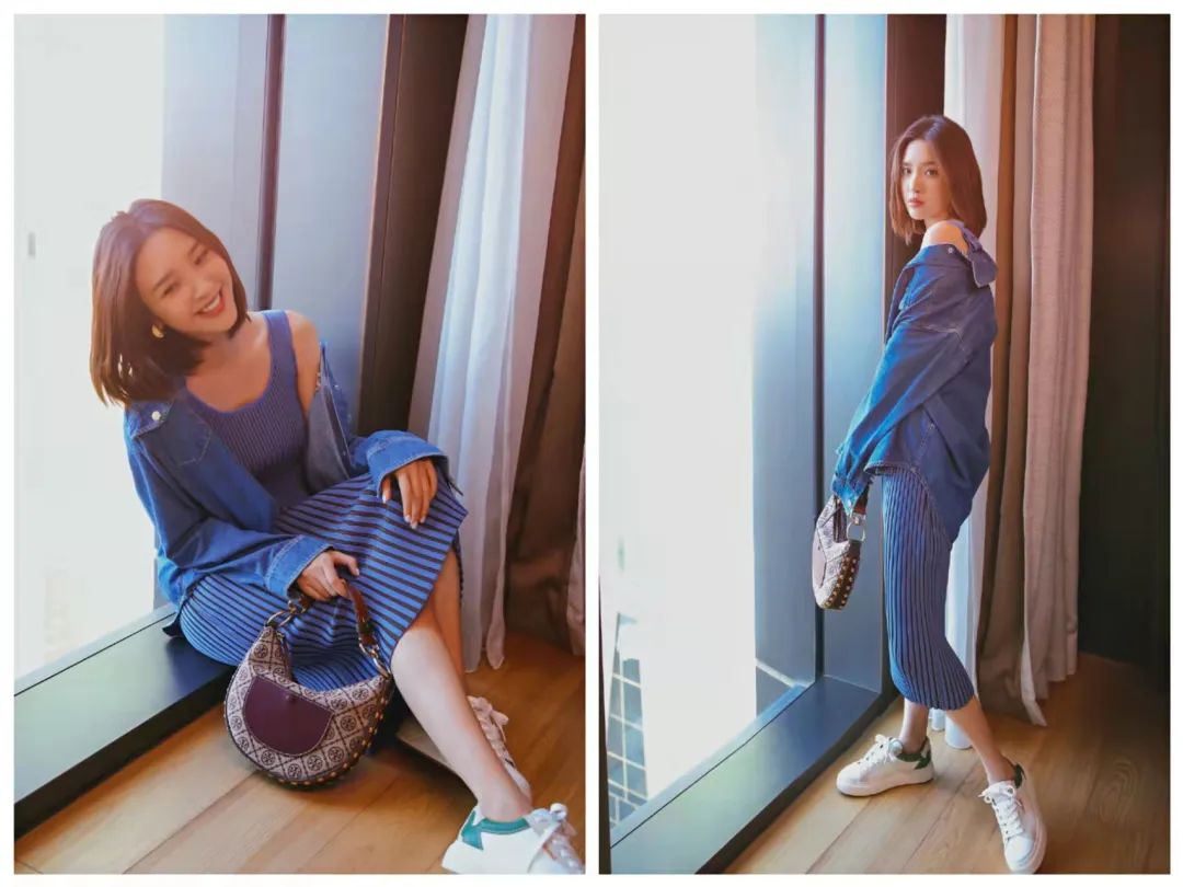 白色背心配白衬衫,再搭配一条宽松利落的牛仔裤,简直是大写的“纯欲”。整体LOOK清爽干净,再搭配标志性的笑容,妥妥的元气小甜妹。另一组大片中,唐艺昕身穿休闲针织连衣裙,牛仔上衣则随性地滑落肩膀,更添造型层次感。整体造型非常出片,打造酷酷的氛围感简直满分 !整个人又高级又青春洋溢,谁能相信她已经是个两岁小孩的妈妈了呢?唐艺昕能保持青春元气的少女感,其中有很大一部分原因是“会穿搭”。