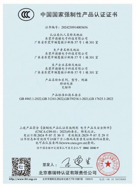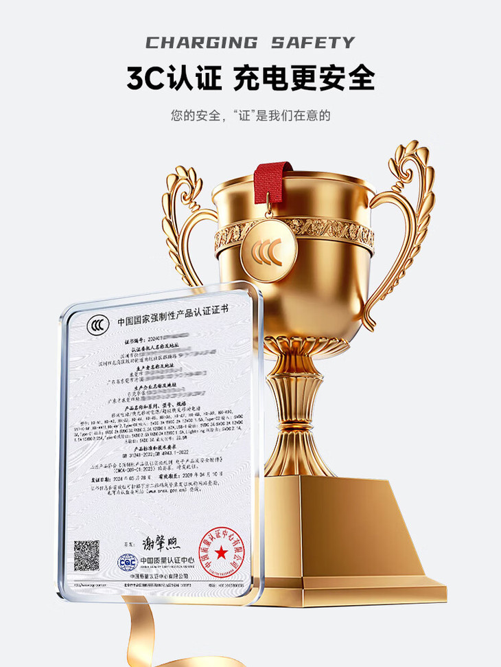 国家级安全保障:全系通过中国强制性认证(CCC),品质硬核!