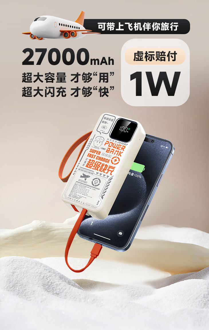 核心卖点一:登机无忧,27000mAh超大容量(符合登机要求的最大容量!)