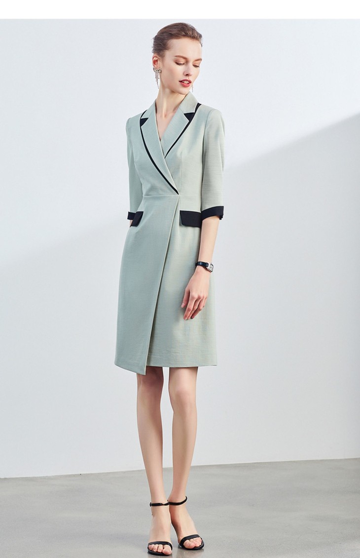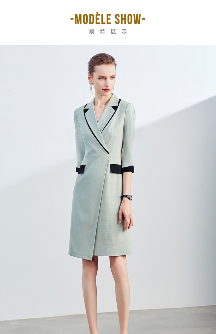 IWY七分袖绿色拼接连衣裙优雅法式小香风中长裙Q646