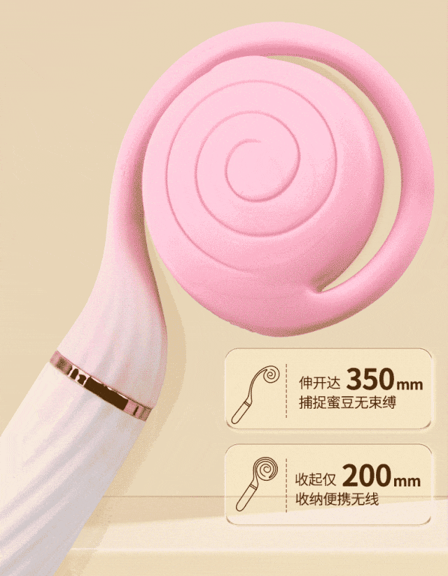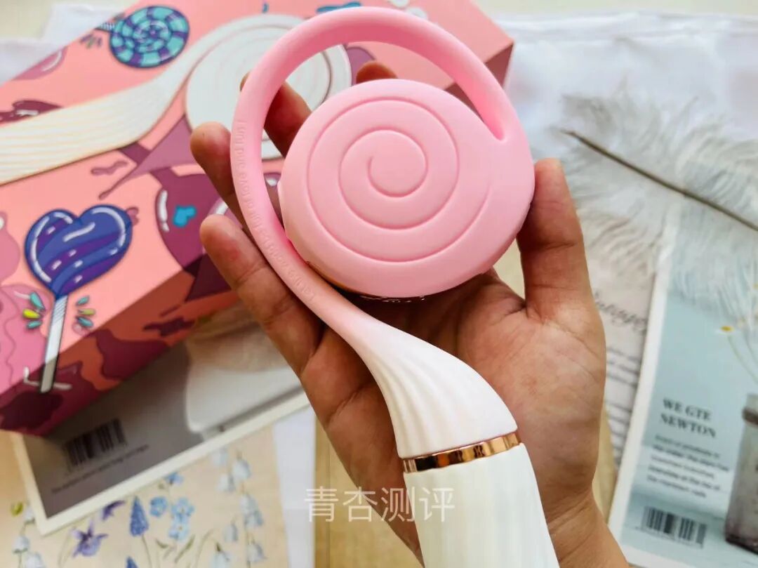 但打开包装后,拿出棒棒糖的那一刻,豁然开朗——原来是一个设计特别精巧的玩具,棒棒糖上端是吮xi口,拿在手上的一端是入体抽动的pao机,最巧妙的是,一根细线连接了两头,而收起来的时候细线又可以完美地绕在棒棒头上端,还原成一根棒棒糖的形状。