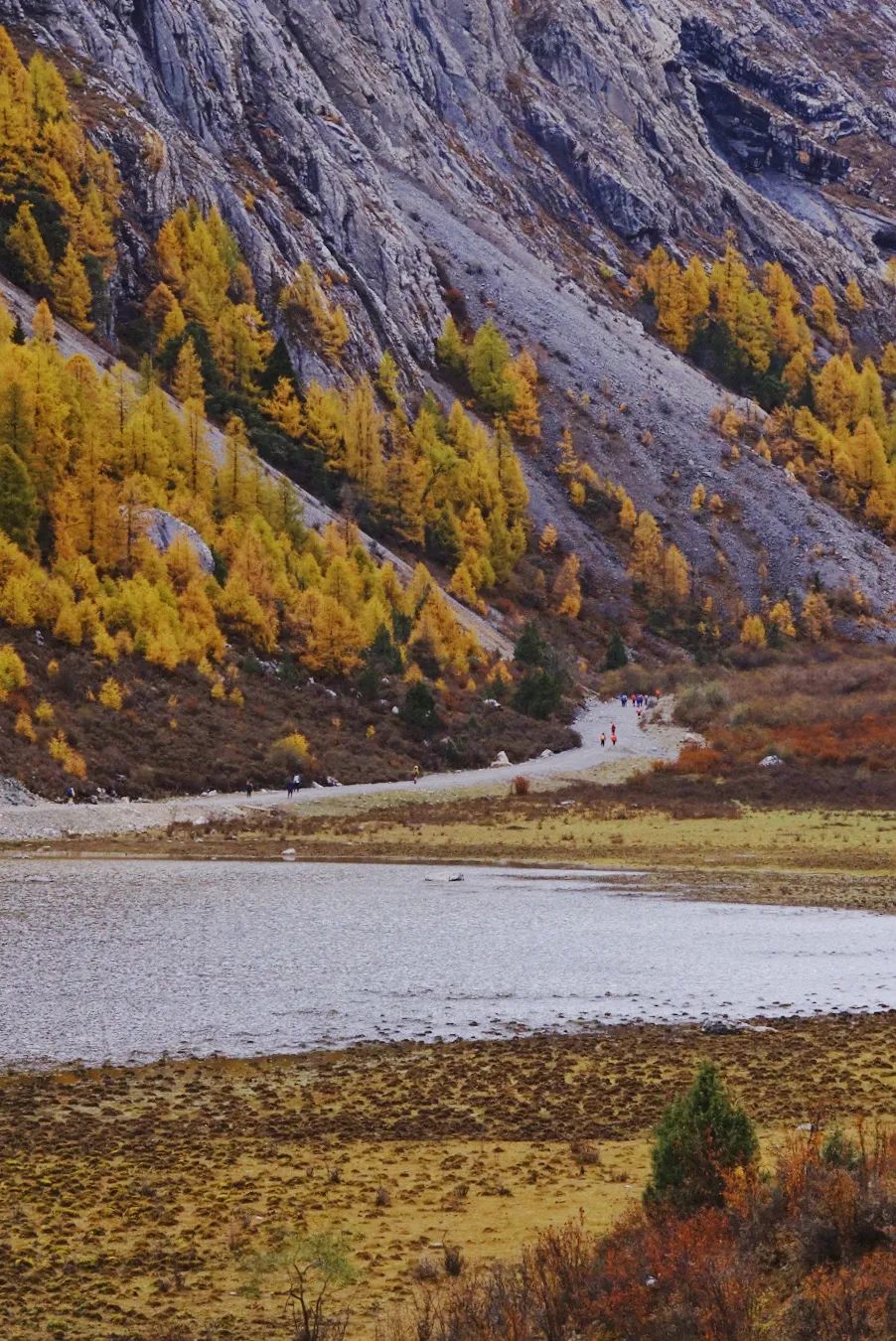 10月是七藏沟秋意最浓的时期,从高原草甸型牧场走向原始杂木树林,四面山峰耸立,满山红叶,金黄灿烂。