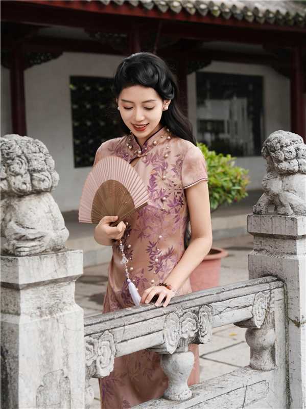 「这袭盈盈粉黛旗袍,穿出少女般的甜醉」