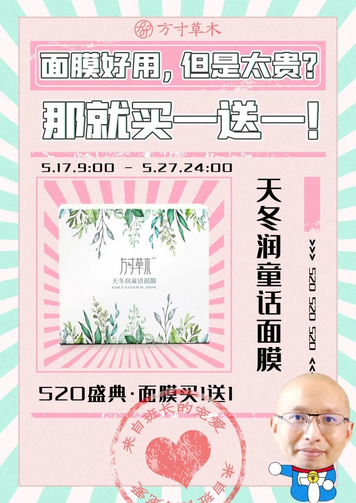 520盛典开始咯!面膜买1送1,口碑热销款买2送1~