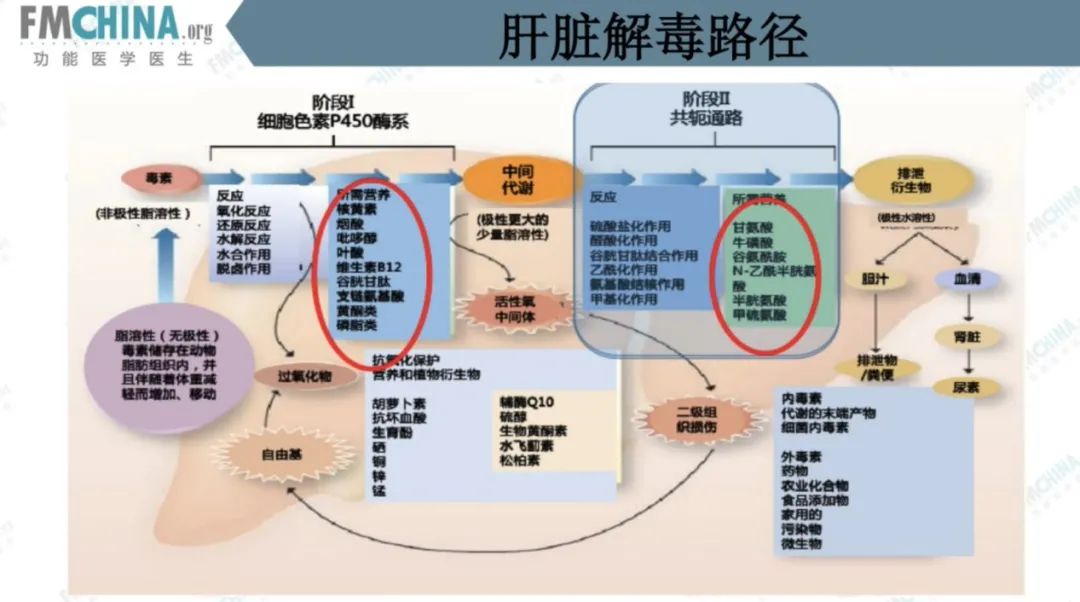 在整体排毒的过程中,肝脏起着非常重要的作用。毒素累积也是以肝脏为一个累积点。因此在这个过程中,需要充分认识肝脏的解读阶段的两个路径,给予肝脏足够的支持和补充。