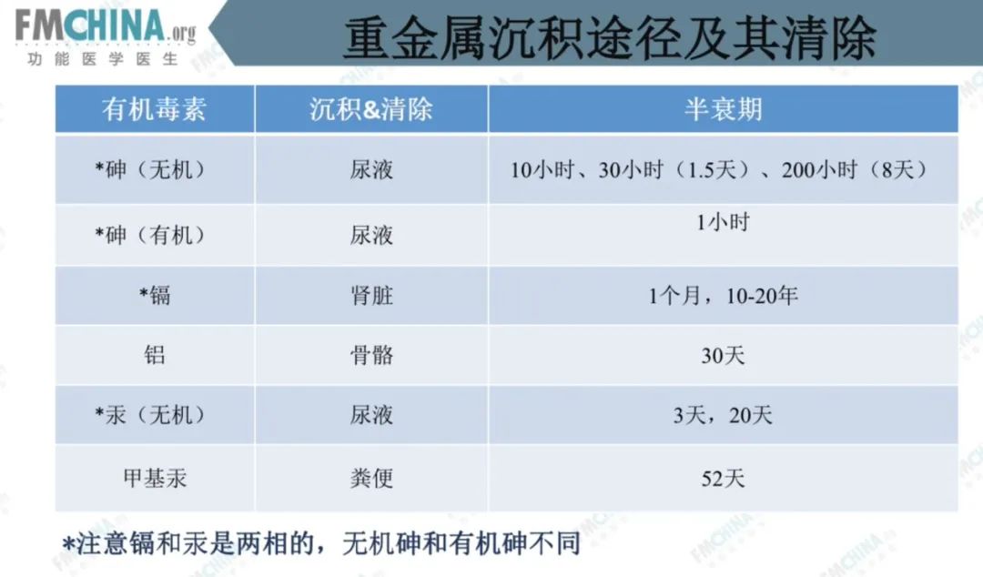 需要注意的是,砷包括无机形式和有机形式两种,其半衰期是不一样的。而汞作为无机汞和甲基汞两种不同的形式在体内的沉积、清除和半衰期也是不同的。