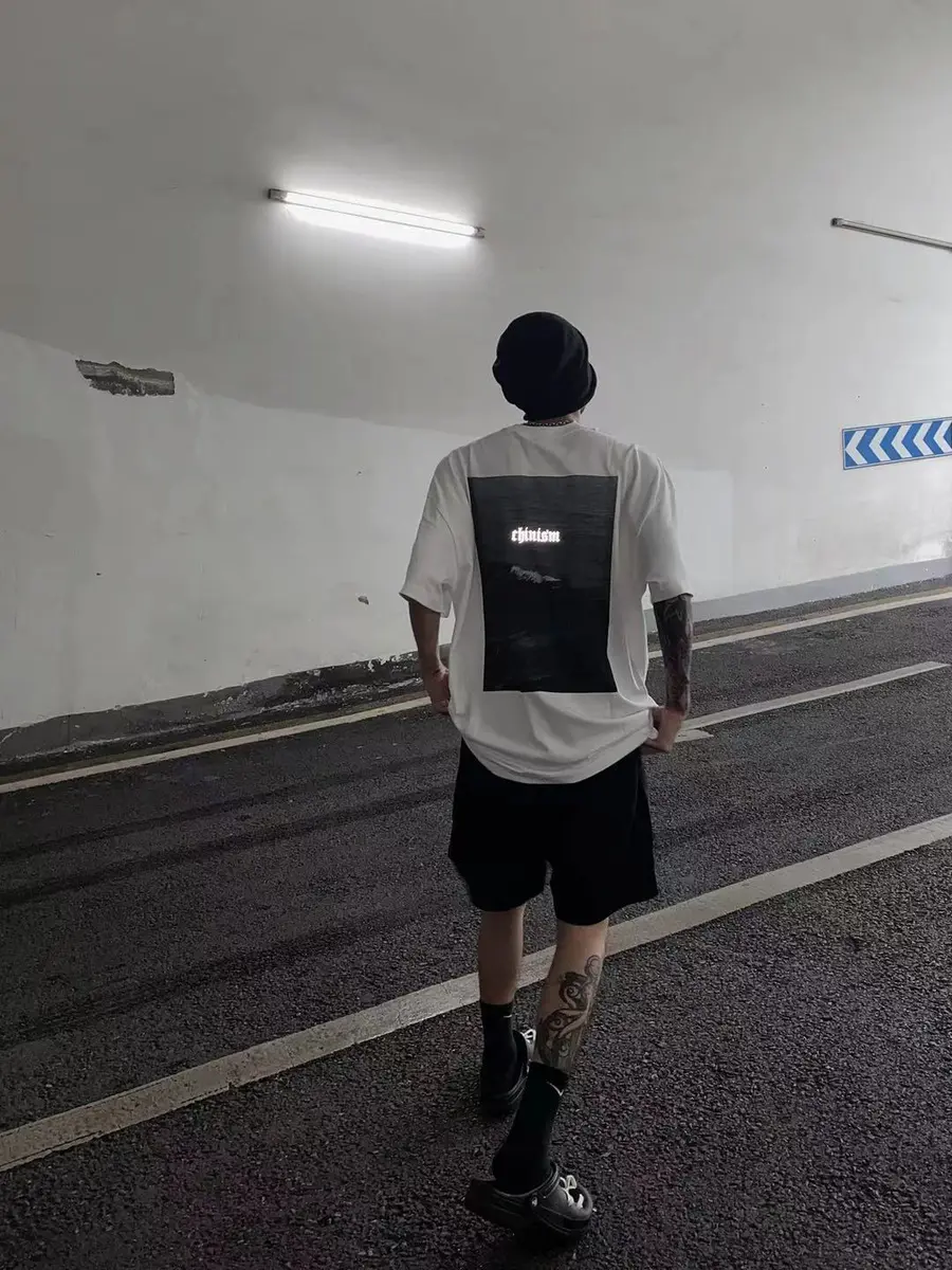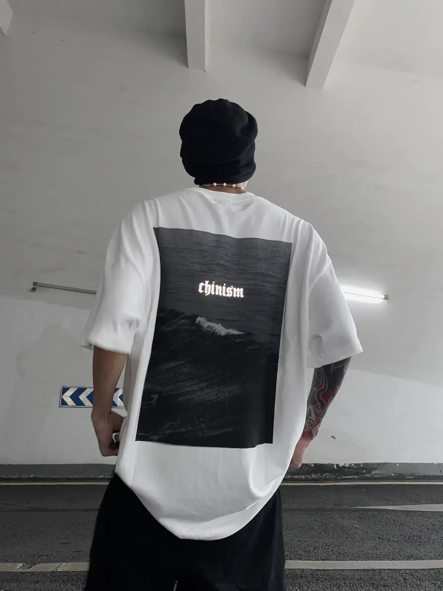 短袖后背海洋印花绝了,双面都有反光印花