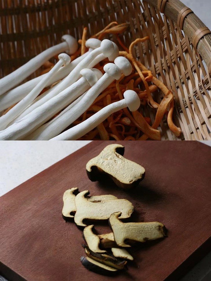 2. 所有菌菇洗净,牛肝菌切片。