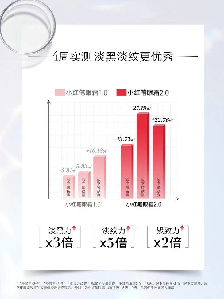 实现3支第1代眼霜=1支第2代小红笔眼霜