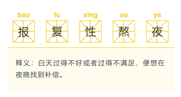 所以很多人舍不得早早睡去,通过打游戏、追剧、刷手机等各种方式治愈自己的疲倦。于是,也就开启了所谓的“报复性熬夜”。