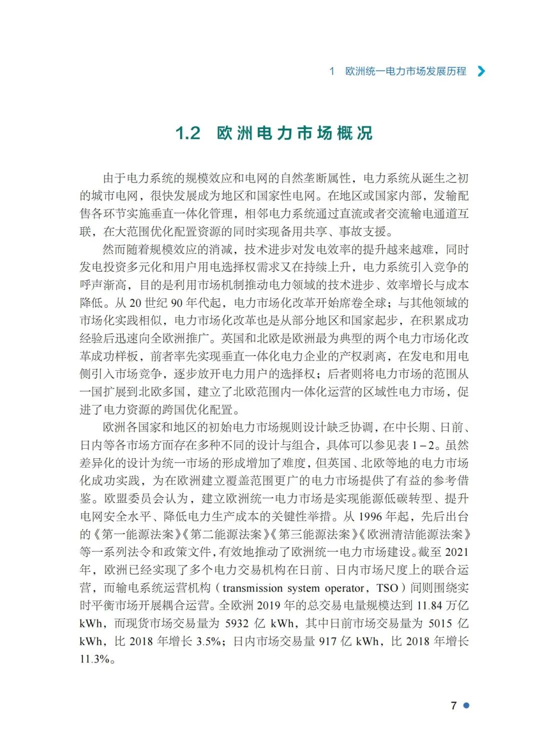 欧洲是电力市场化改革起步最早的地区之一,近年来在欧洲统一电力市场协同运行、高比例新能源消纳等方面取得了令人瞩目的成绩。欧盟的地理范围和发电量均约为我国的一半,具有可比性,欧洲渐进的分步式改革路径、统一电力市场的设计思路和实践经验可以作为“他山之石”,为我国全国统一电力市场建设提供有益的参考,但是国内对欧洲统一电力市场还缺乏系统的研究与介绍。