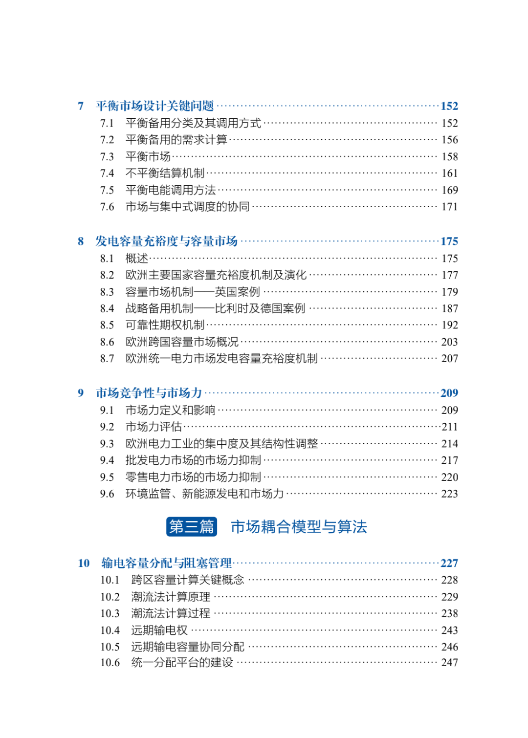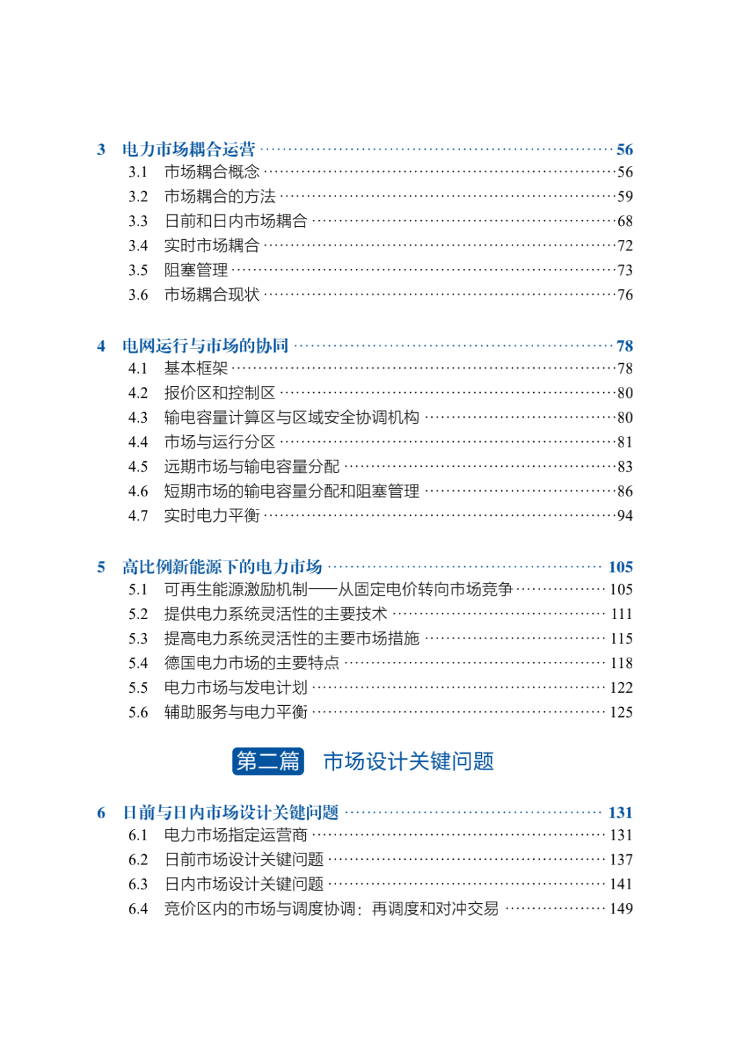 本书系统回顾了欧洲统一电力市场顶层设计演变成熟的历史,分析其各阶段市场建设实践中的主要做法,总结欧洲在市场整合上取得的经验教训。在内容设计上,采用递进式结构,由浅入深分为三篇。前5章为第一篇,展现欧洲电力市场架构、目标模式设计思路及其发展路径,力图使读者对欧洲市场形成整体概念;第6~9章为第二篇,主要对单一国家市场进行分析,包括日前市场、日内市场、平衡市场、容量市场和市场力监控设计的关键要点,这是欧洲电力市场得以融合的基础;第10~13章为第三篇,展开讨论市场耦合的具体算法和模型。第二篇和第三篇主要帮助从事电力市场设计和研究的专业人员深入理解市场设计原理,对于仅需一般性了解欧洲统一市场的读者,第一篇可以自成体系。