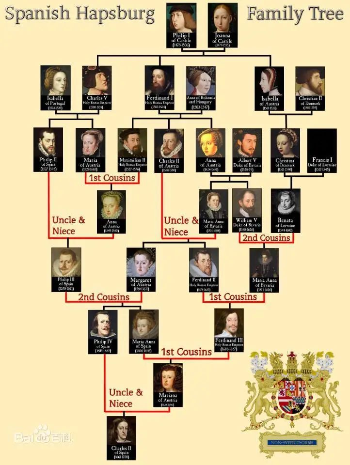 西班牙哈布斯堡王朝系谱丨来源:百度百科