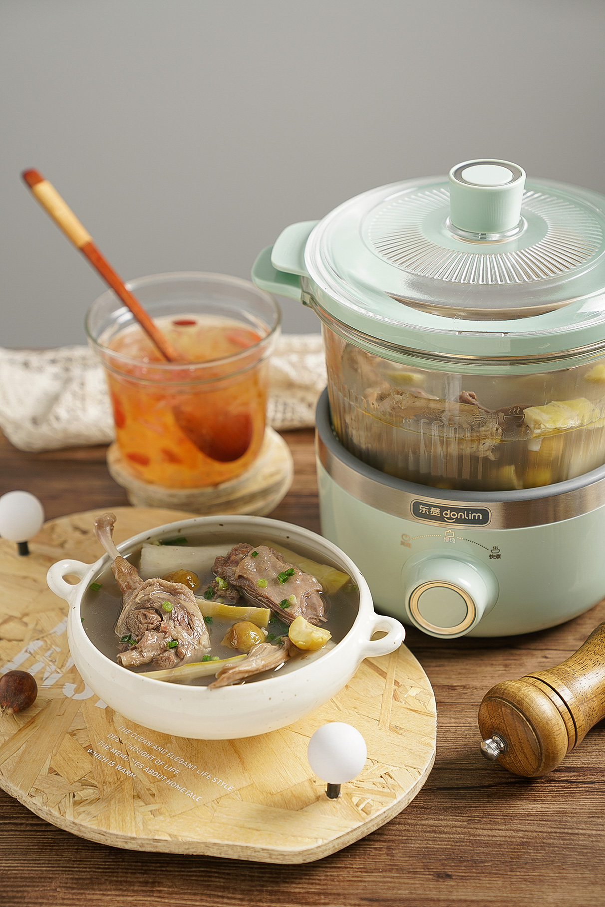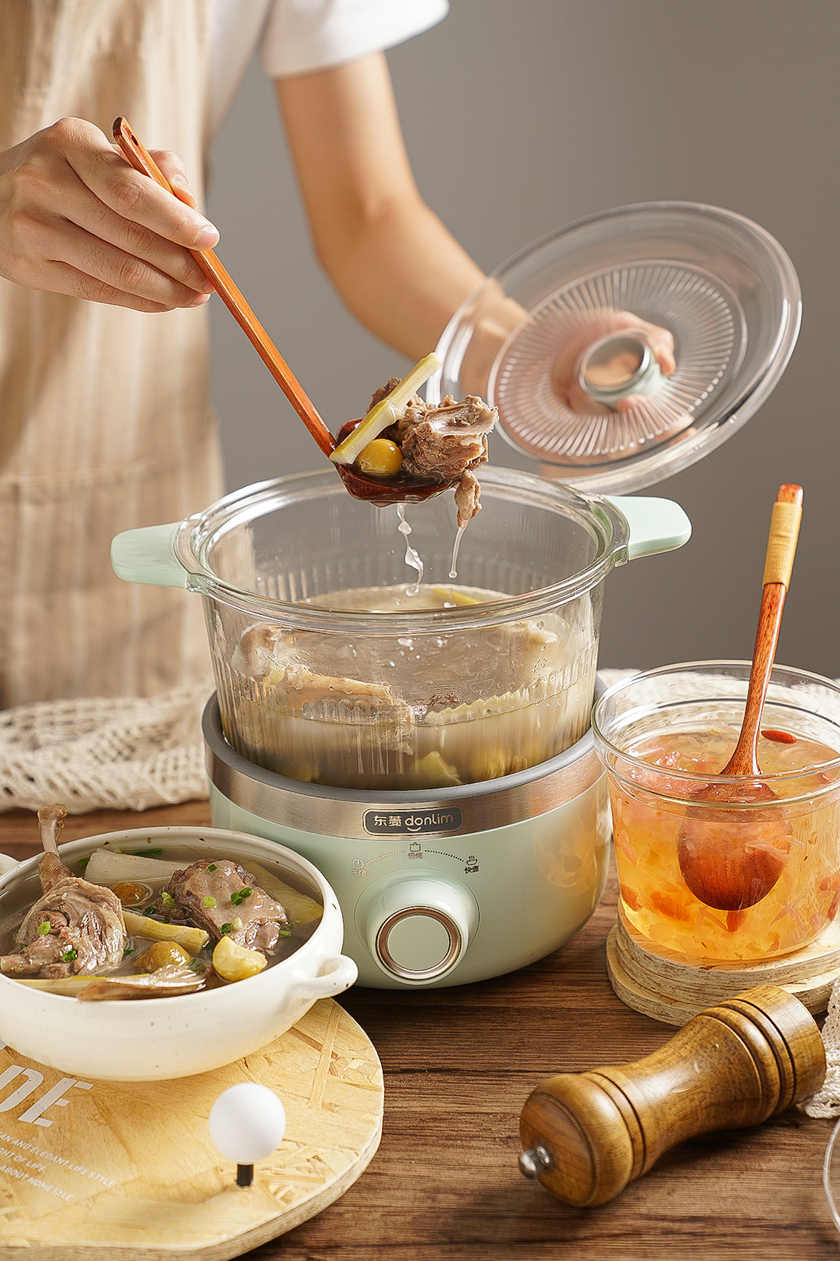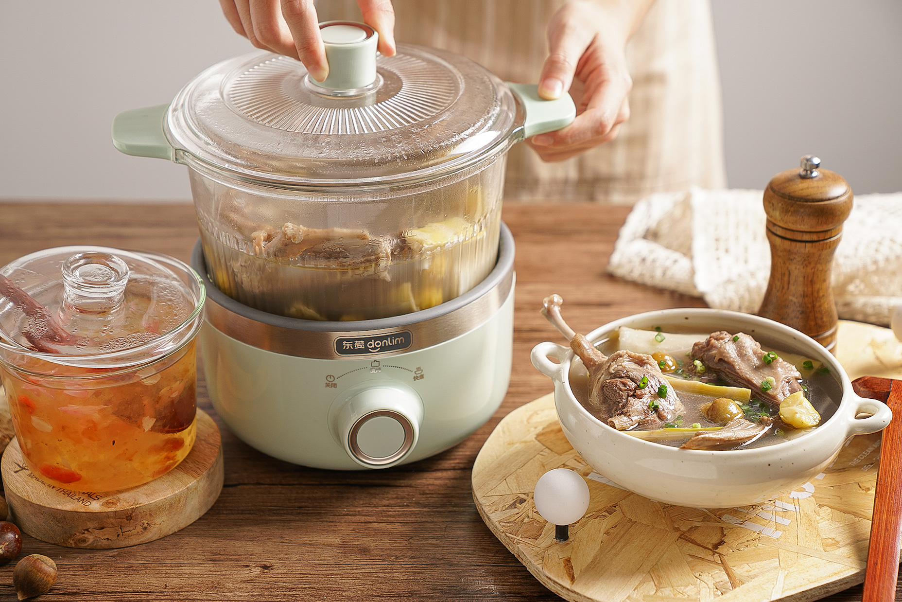 6.东菱养生锅中倒入开水或温水到慢炖的低水位线;