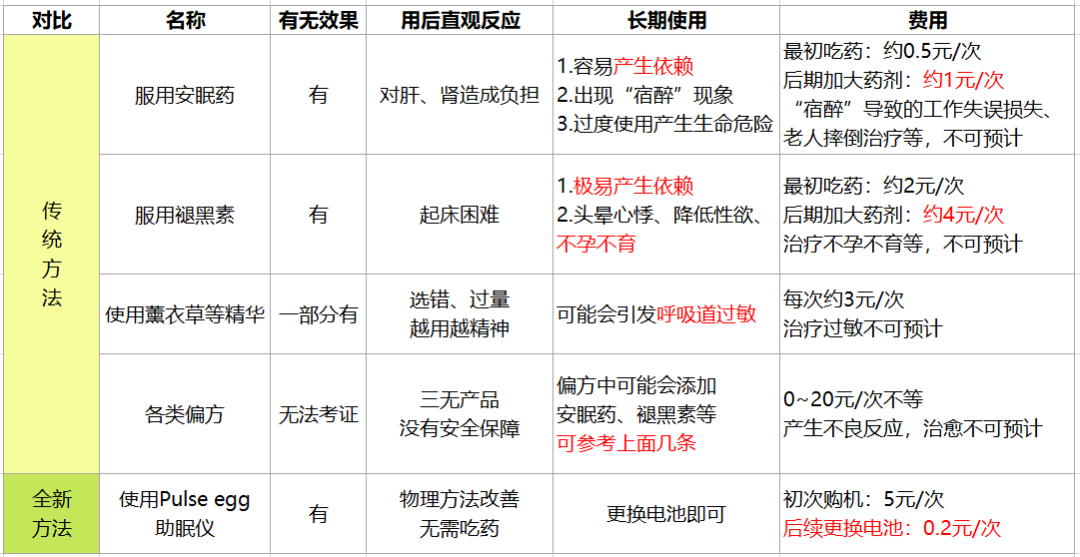 通过对比传统的改善失眠方法,我们可以发现: