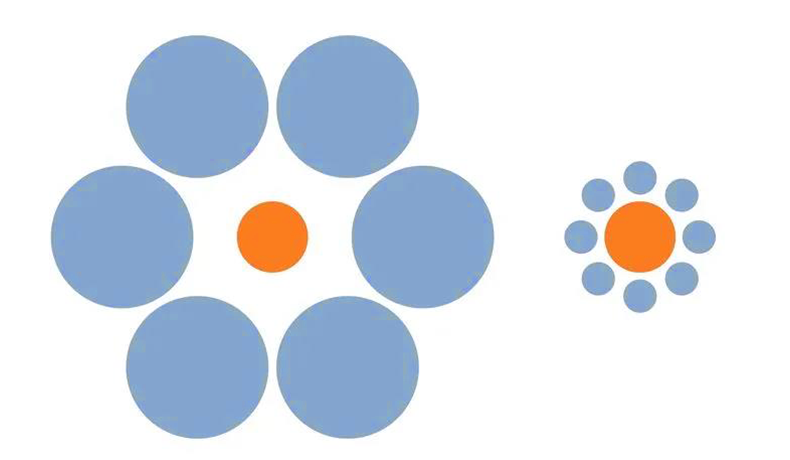 视觉欺骗应该有姐妹听说过吧?像下面你会觉得左边中间点比较小,其实两个点一样大。