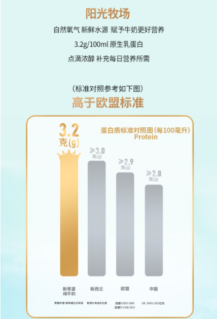 每100ml 牛奶蕴含 3.2g 原生乳蛋白,点滴之间皆是浓醇精华,轻松满足每日营养所需。