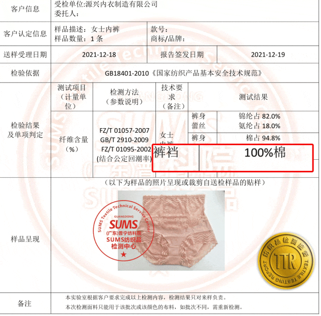 注意哦,是质检报告盖章认证的:全棉底档!