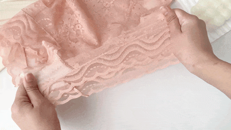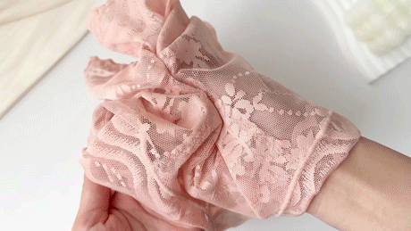 制作出来的成品蕾丝对皮肤的摩擦度几乎为0,抓揉在手上软软糯糯一团,超级像丝滑又绵软的奶油!
