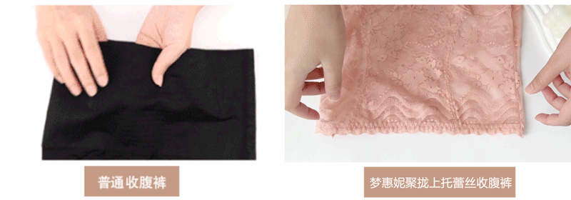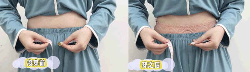 360°弹力蕾丝面料全包围腰腹,利用赘肉的可流动性,分散、推平、紧致肚子上的肉肉。