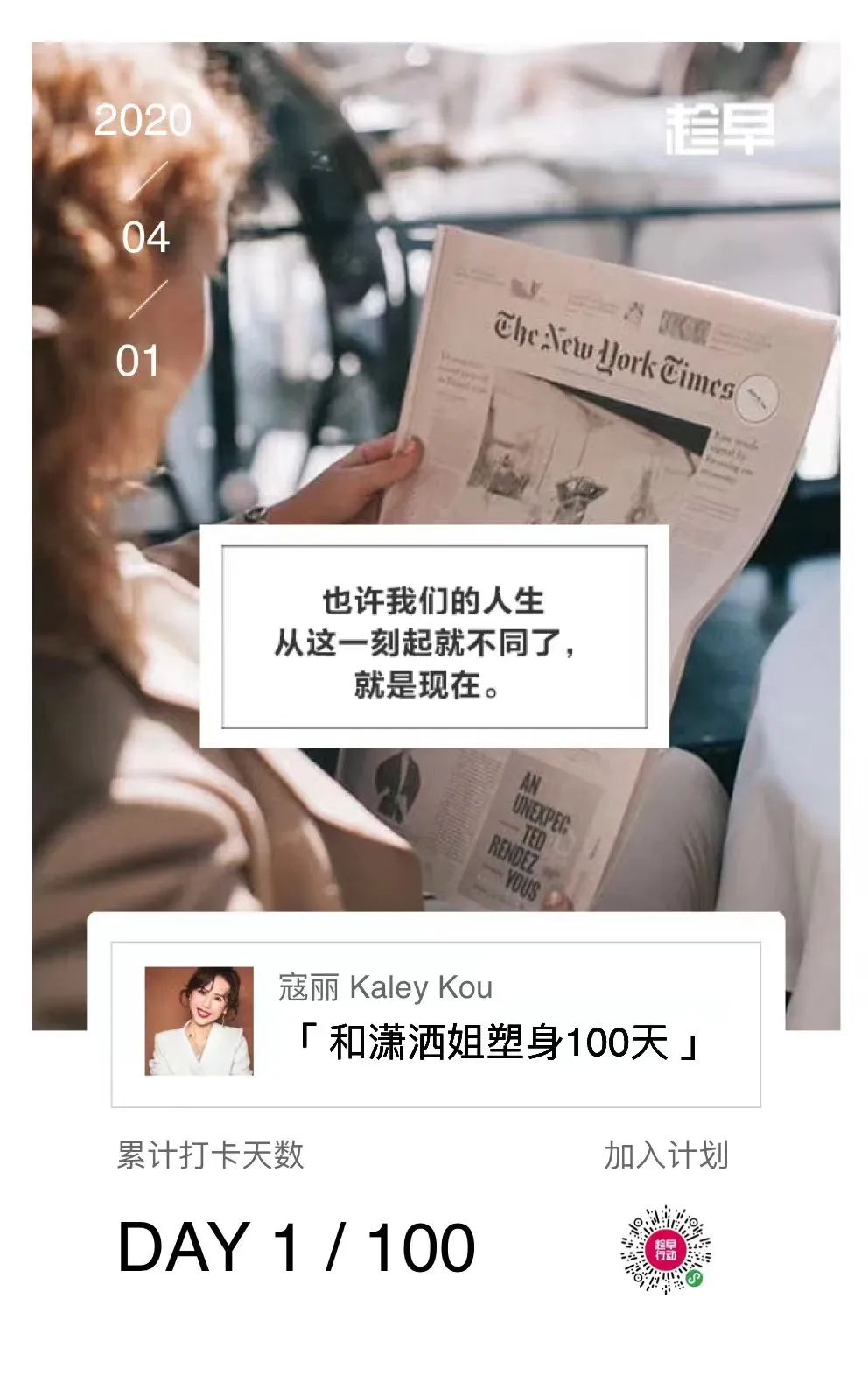 于是,在2020年的愚人节,抱着随便试试的心态,Kaley正式加入了“和潇洒姐塑身100天”计划。
