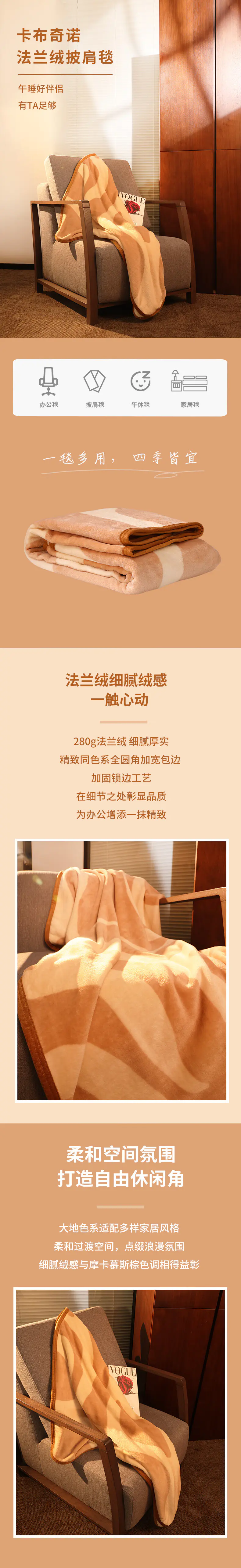 一毯多用:可作为披肩毯、办公毯、午休毯、客厅盖毯等,覆盖居家、办公、差旅多场景需求。