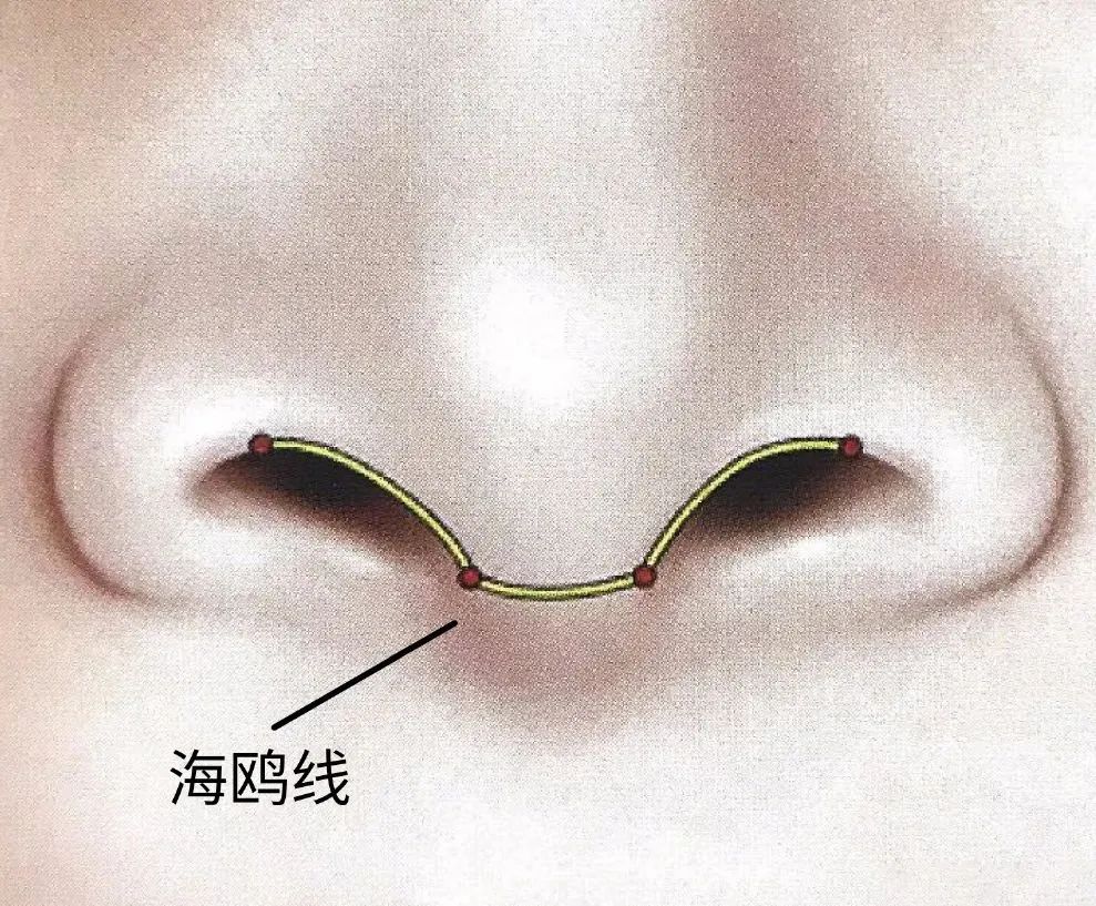 海鸥型算一个很常见的鼻部审美标准,具体来说就是鼻头到鼻翼的形状像一个飞翔的海鸥,这实际上有两重要求:一是鼻头或鼻小柱正面比鼻翼略长;二是鼻翼不能太上缩,否则正面会露鼻孔露的比较严重。