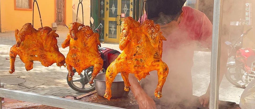 古松杨树下的地道手抓肉、路过打尖的昭苏小镇里新鲜出炉灿黄酥脆的烤包烤串、嚼头正好吃到扶墙走的大盘鸡、雪水淘洗清甜入心的樱桃奶杏⋯⋯