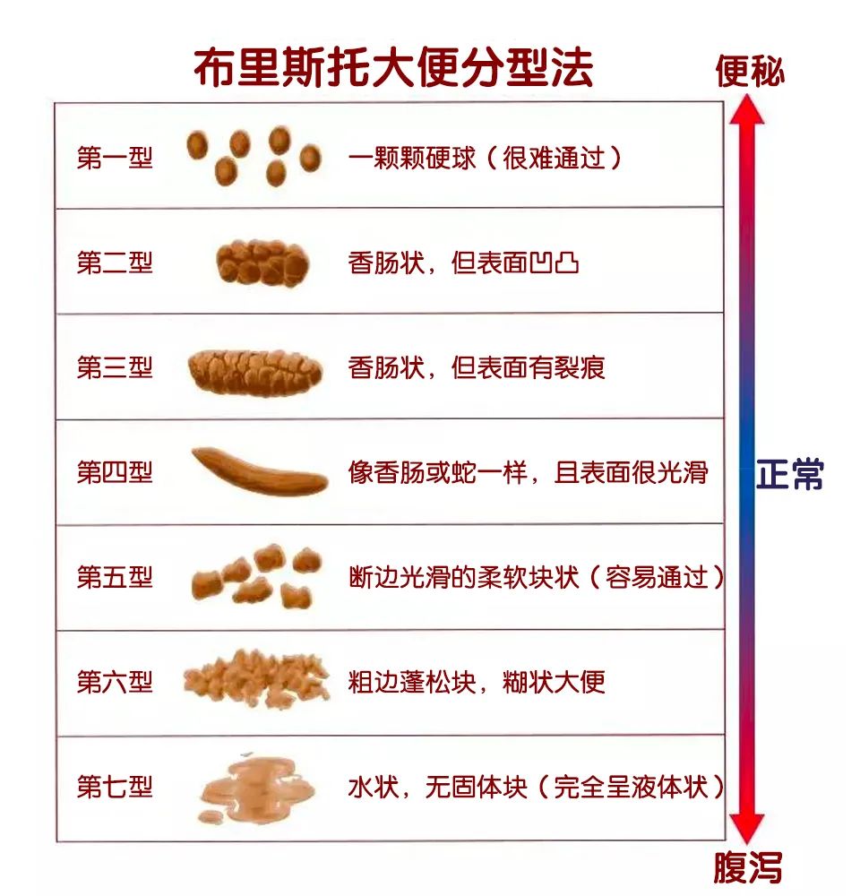 每个人对于便便性状的判断往往不一致,现在通常以布里斯托粪便分型法作为判断依据,将大便分为七种类型。