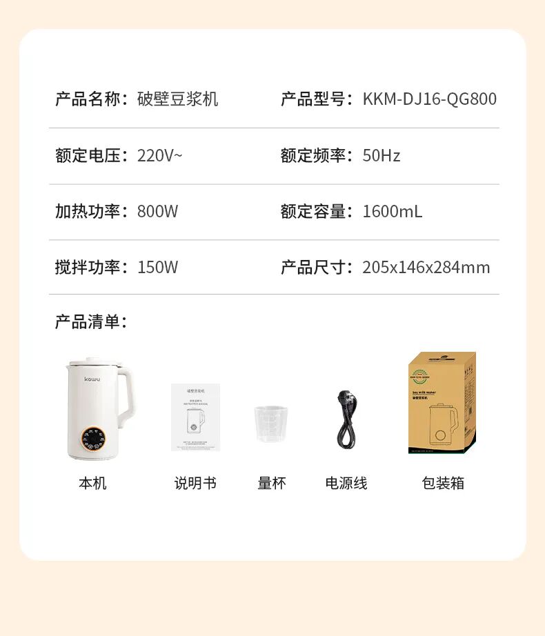✅8大功能(浓豆浆/玉米汁/米糊/辅食/果汁/烧水/保温/清洗)