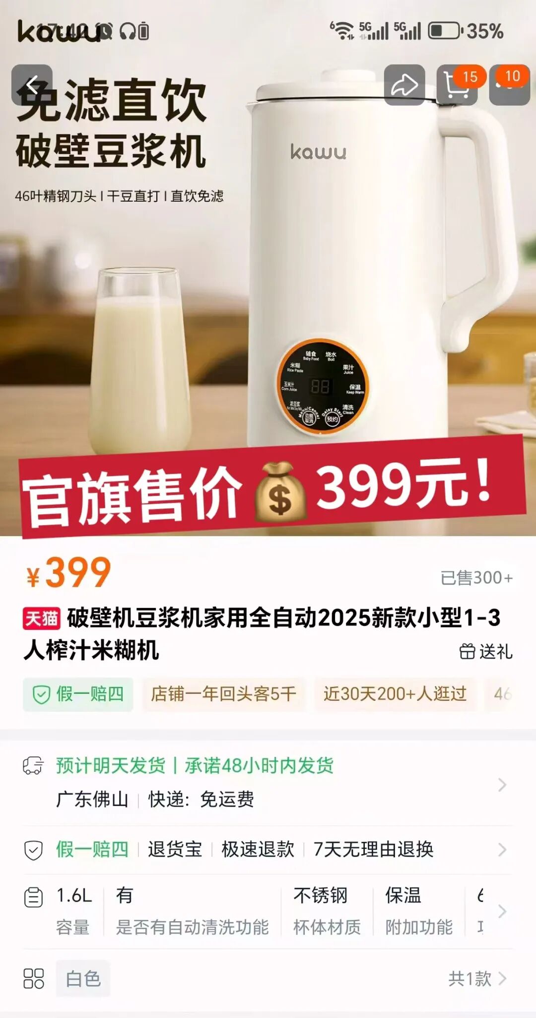 2、46叶精钢刀刃,打出来的豆浆细腻无渣,免泡豆、免过滤,超方便。