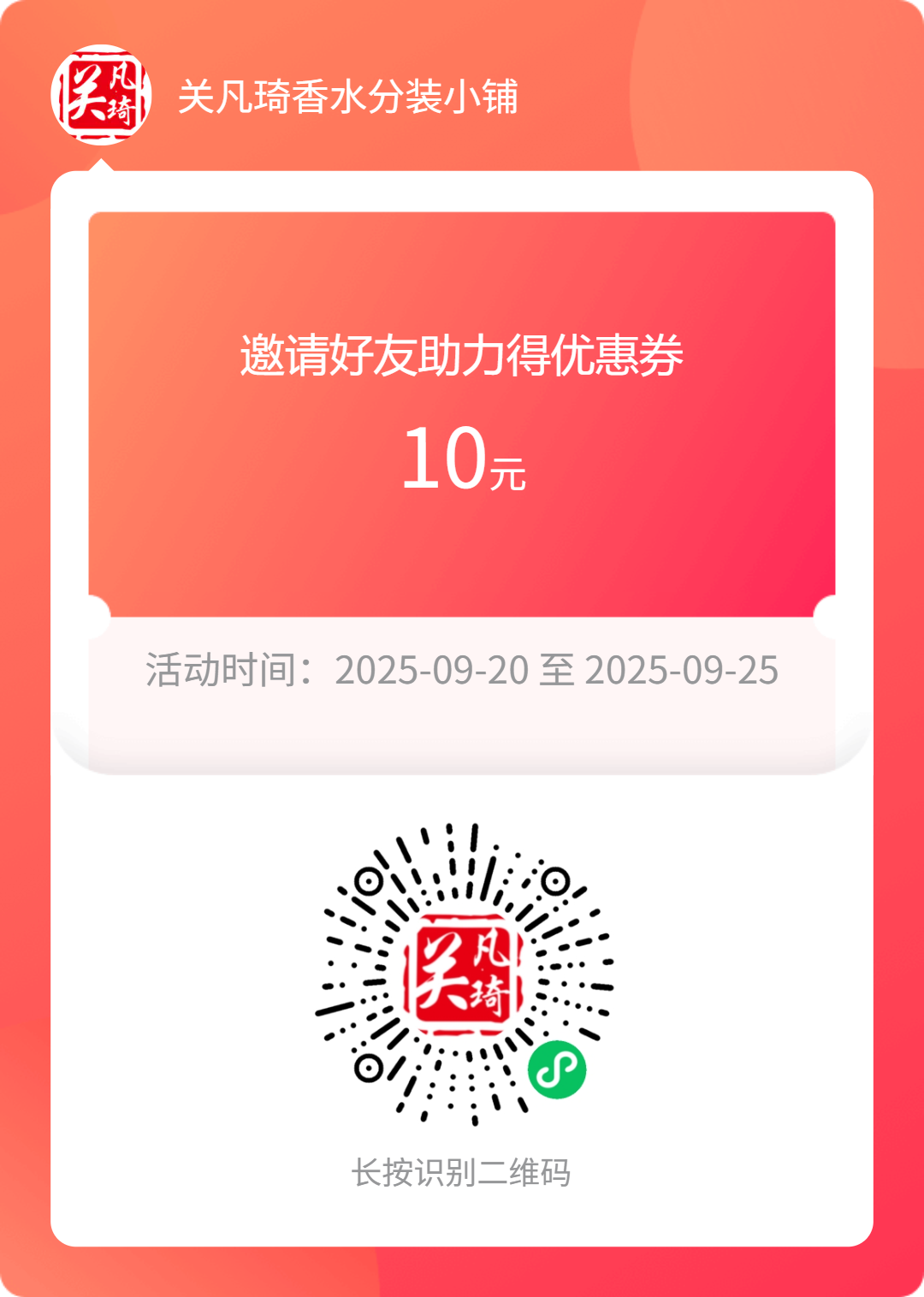 分享店铺至3位好友可领取10元无门槛优惠券,扫码可参与!