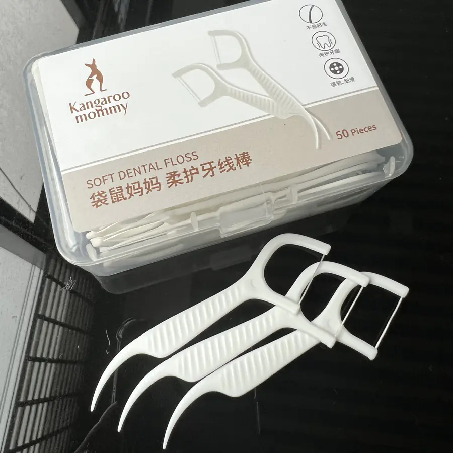很多人觉得牙签棒都大同小异,但实际上每一款牙签棒都有其独特的设计,像袋鼠妈妈柔护牙线棒的这款牙线棒就采用了防滑手柄的设计,虽然是很细微的处理,但却起到了很好的防滑效果,在使用时能够更好地掌握力度,避免损伤牙齿、牙龈。