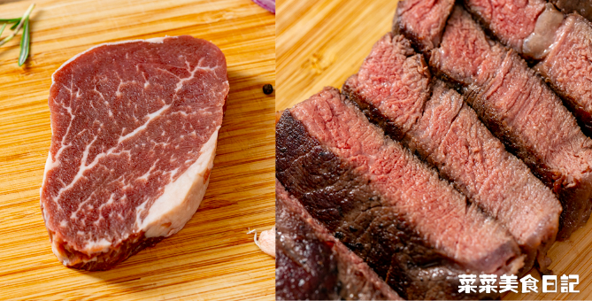 ,一块牛排一半水,因此怎么煎都很嫩,却没什么肉味。
